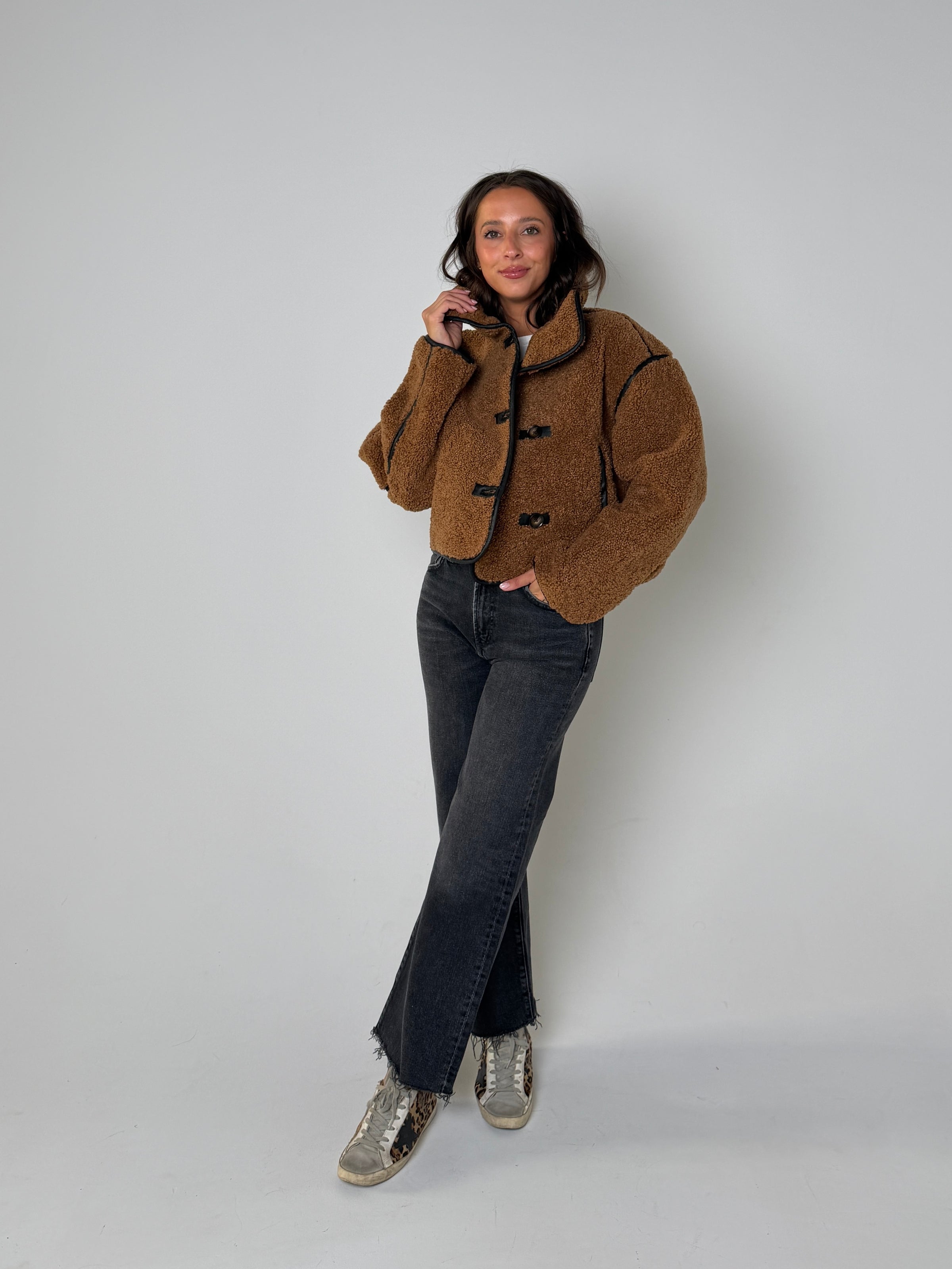 Stylist Tip: As a product expert, enjoy the fun cropped design of our Dirt Road Jacket in brown combo. Crafted with care, this jacket is perfect for adding a touch of sophistication to any outfit. Its unique mix of colors and quality construction make it a must-have addition to any wardrobe.