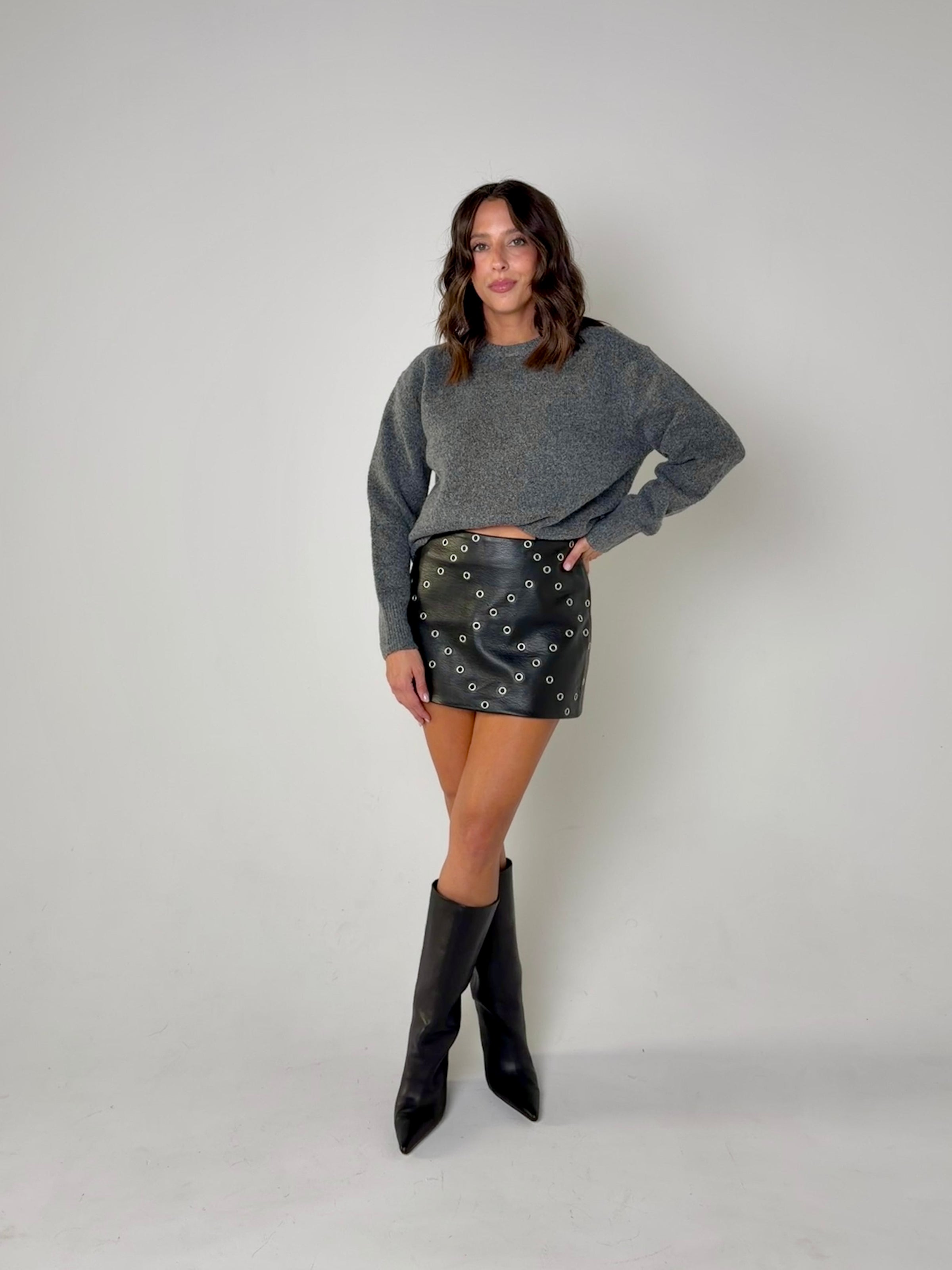 Stylist Tip: The Smart Choice Mini Skirt combines style and edge with its black design and eye-catching silver studs. Perfect for any occasion, this skirt will elevate your look and make a statement. Embrace the confidence and sophistication that comes with this must-have addition to your wardrobe.