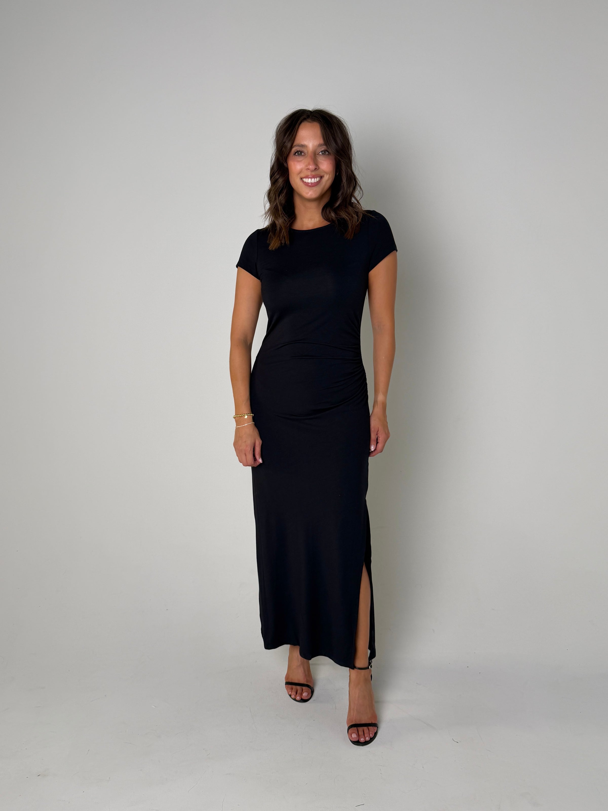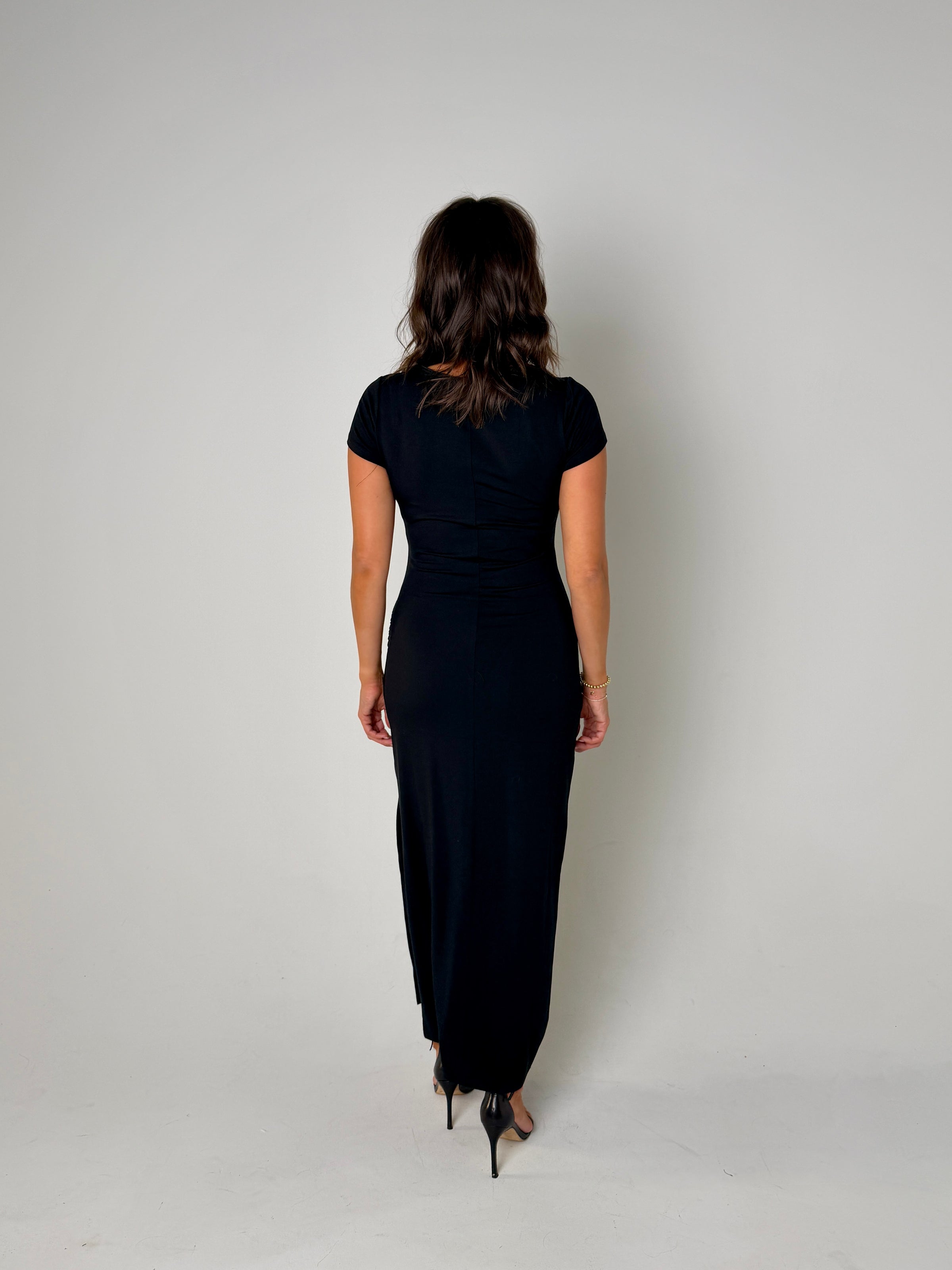 Stylist Tip: The Aurelia Midi Dress is a versatile and elegant addition to your wardrobe. With its classic black color, this midi dress is perfect for any occasion. Its flattering length and timeless design make it a must-have for any fashion-forward individual. Made with high-quality materials, it offers both comfort and style. Elevate your look with the Aurelia Midi Dress.