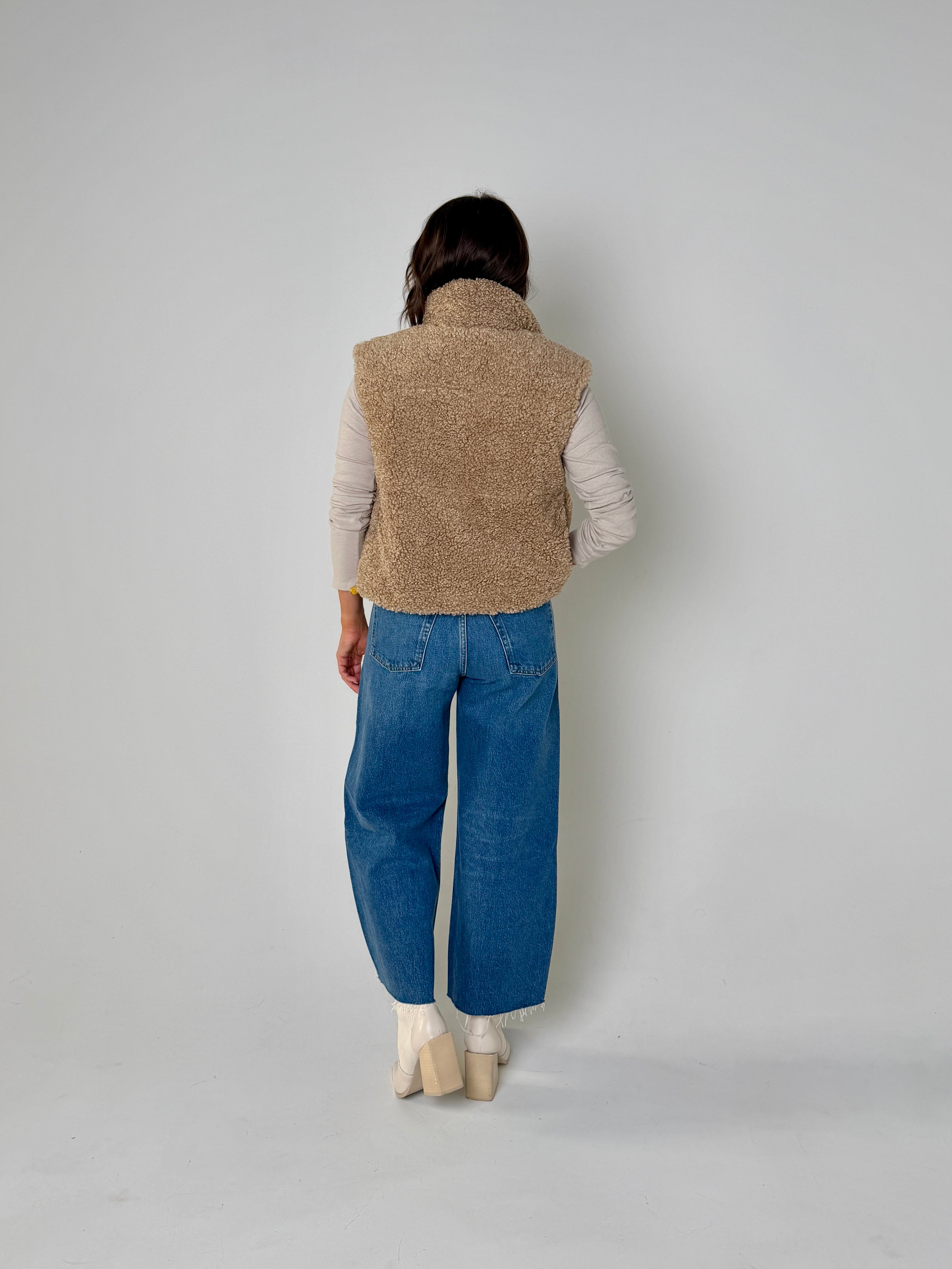 Stylist Tip: The Sherpa Cecily Vest in latte is the perfect outerwear choice for chilly days. With its cozy and warm sherpa material, this vest will keep you comfortable and stylish. The versatile latte color will easily match with any outfit, making it a must-have for your wardrobe.