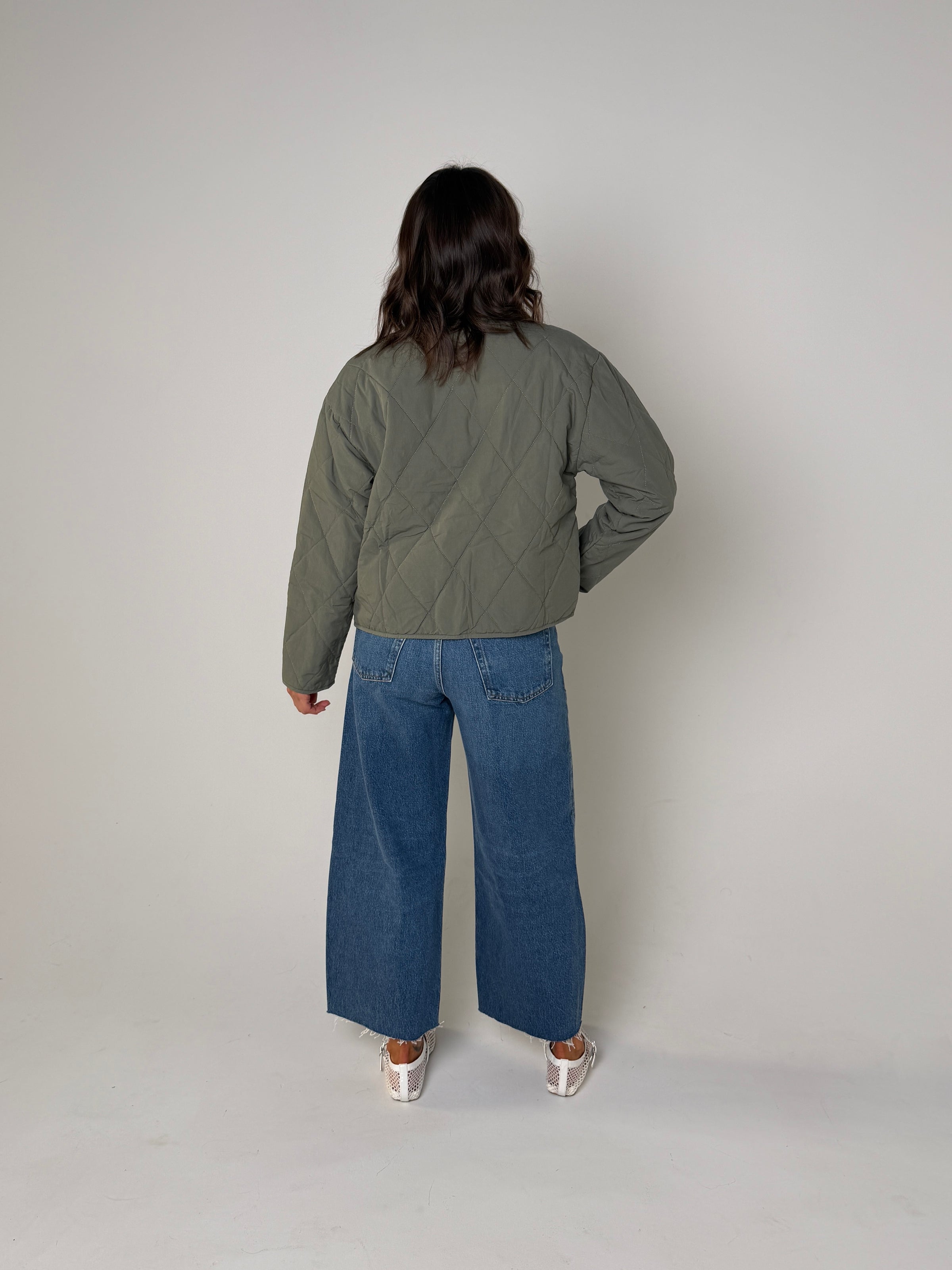 Stylist Tip:This quilted jacket, cropped in a sleek castor grey, is both stylish and functional. The unique design adds a touch of sophistication to any outfit, while the quilted material provides warmth and durability. Stay fashionable and comfortable with the Aspen Quilted Jacket.
