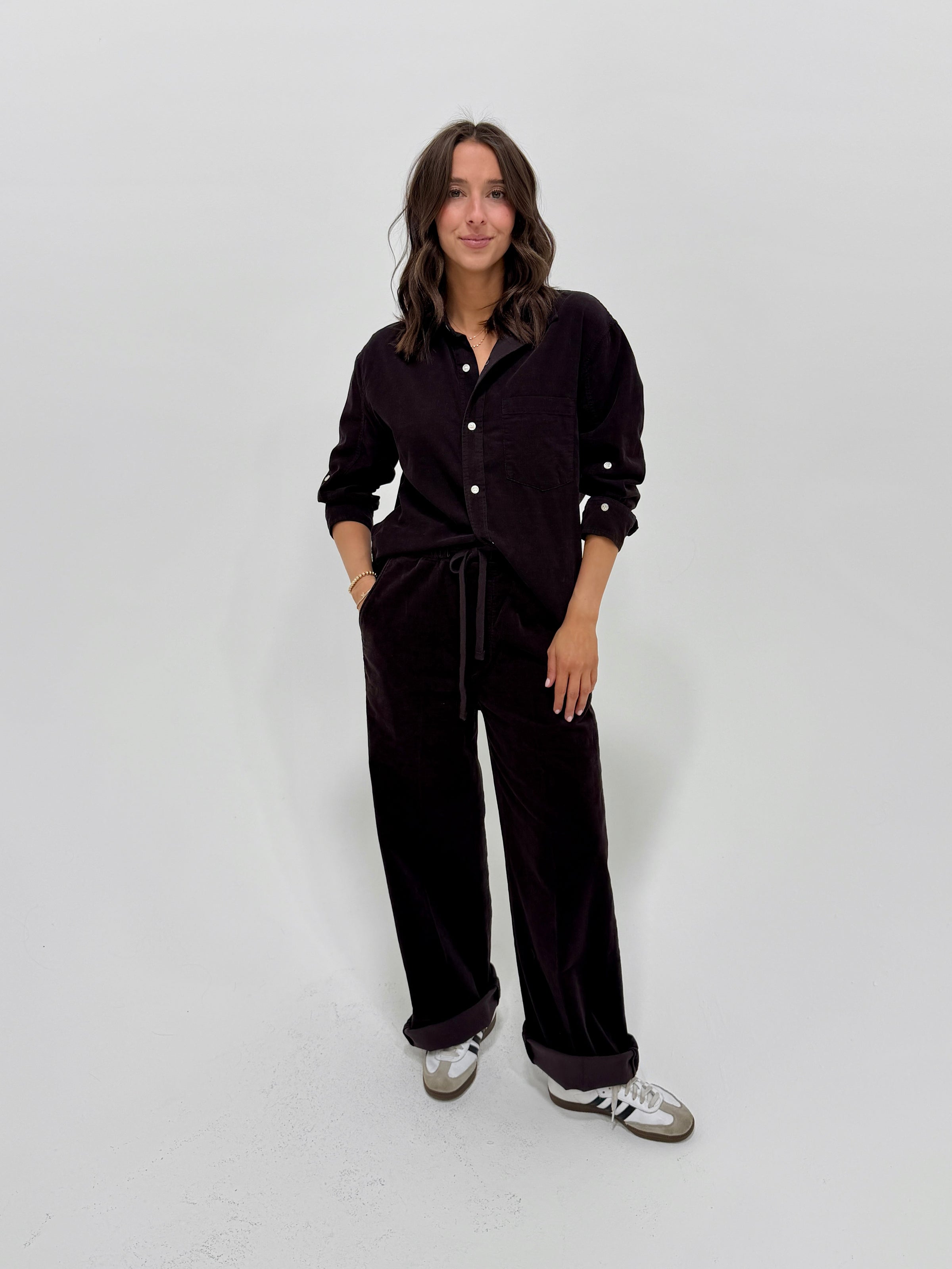 Stylist Tip: Get comfy and stylish with the Aurora Pull On Pant! With its soft corduroy fabric and convenient pull on design, these pants are the perfect combination of comfort and fashion. No more struggling with buttons or zippers, just slip these on and go. A must-have for any wardrobe!
