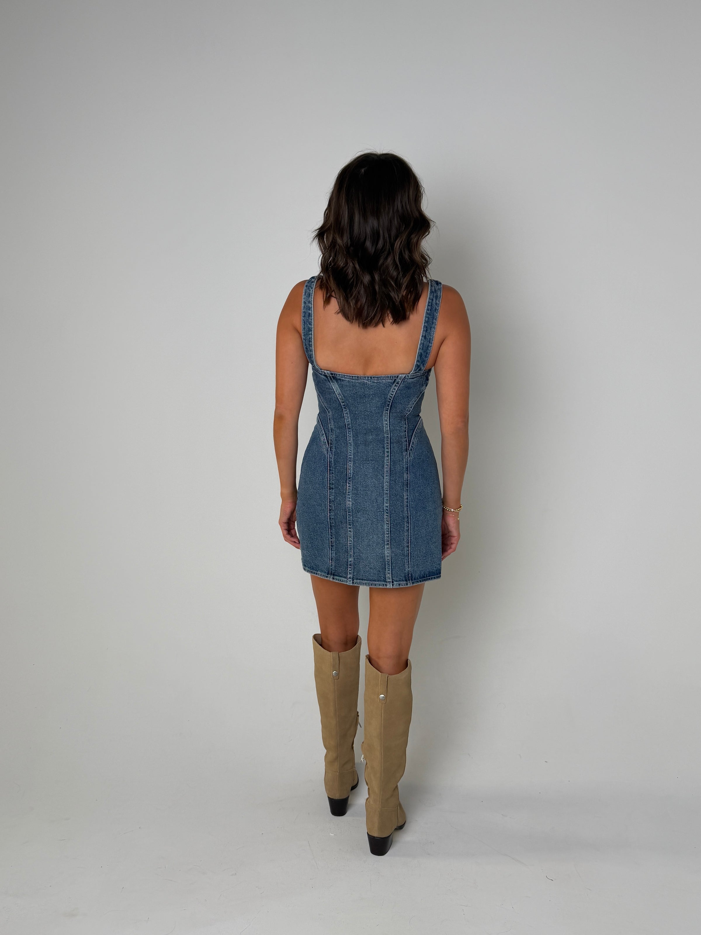 Stylist Tip: Introducing the Sabrina Mini Dress - a stylish and versatile addition to your wardrobe. Made from high-quality denim, this mini dress features unique zipper details for a touch of edge. Perfect for any occasion, this dress provides both comfort and style in one.