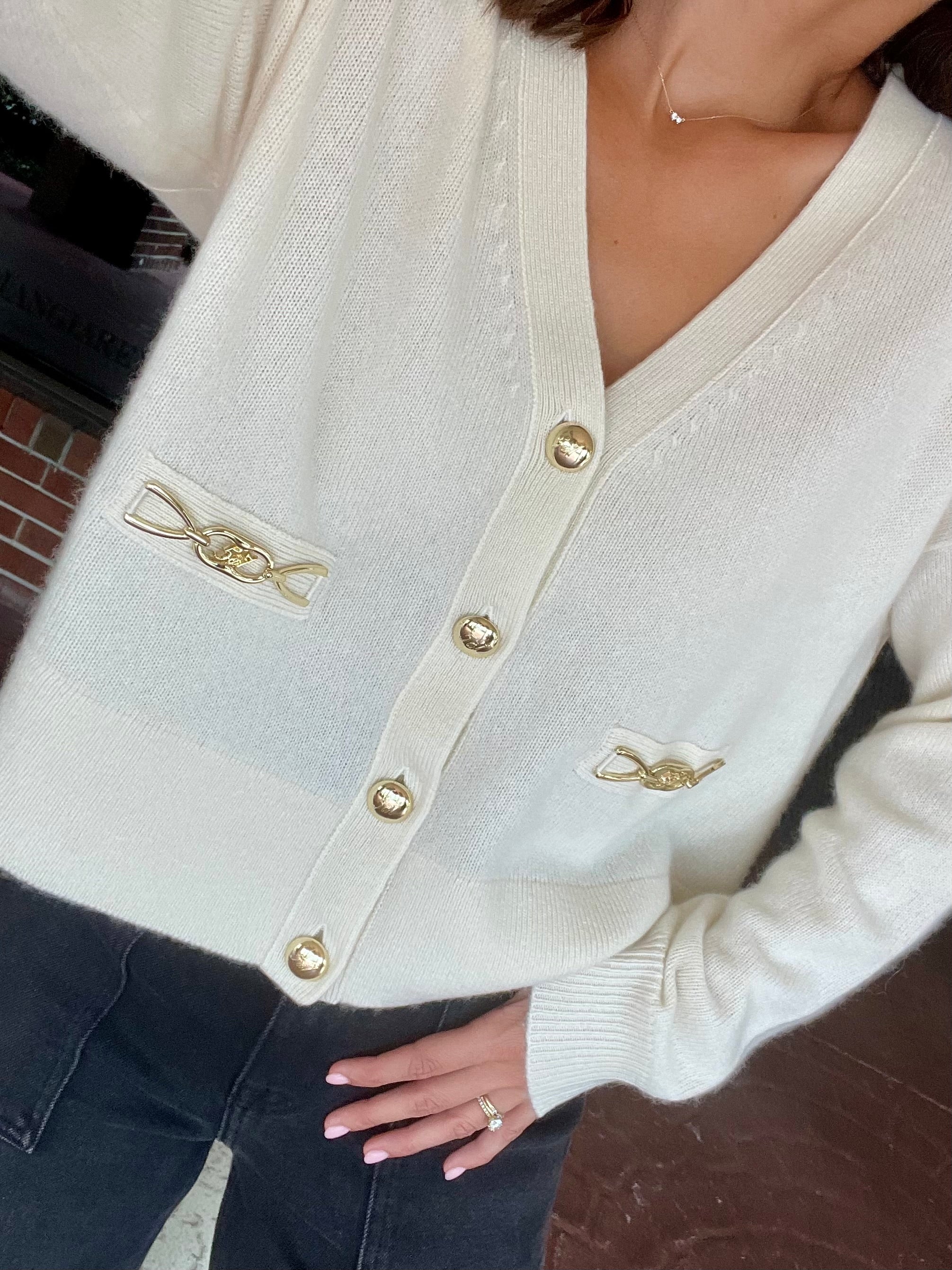Stylist Tip: Introducing the Kavita Cashmere Cardigan, a luxurious addition to your wardrobe. Made from 100% cashmere, this ivory cardigan offers superior softness and warmth. Elevate any outfit with this versatile and timeless piece.
