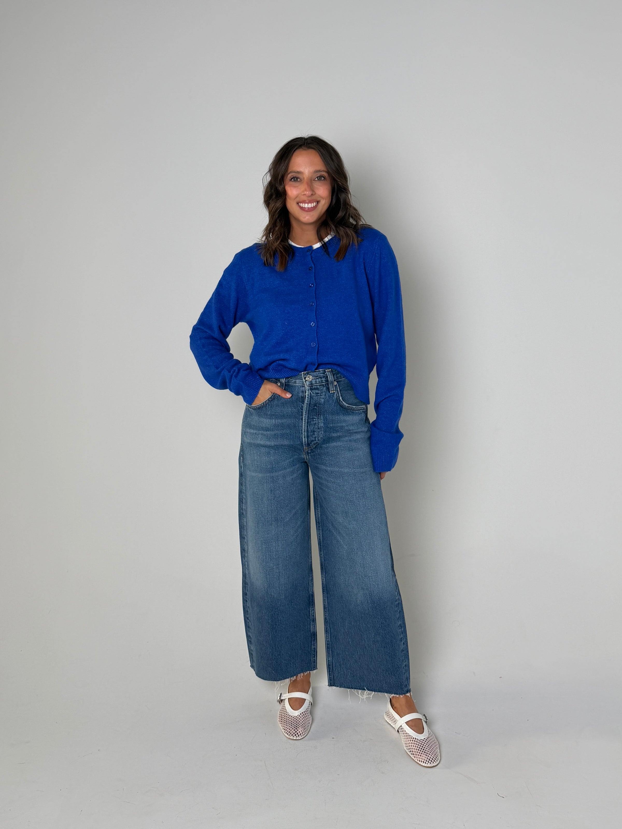 Stylist Tip: The Medina Cardigan is a classic staple in the timeless color of nautical. Crafted with high-quality material, this cardigan offers effortless style and versatility. Perfect for any occasion, it's a must-have in your wardrobe for its timeless appeal and comfort.