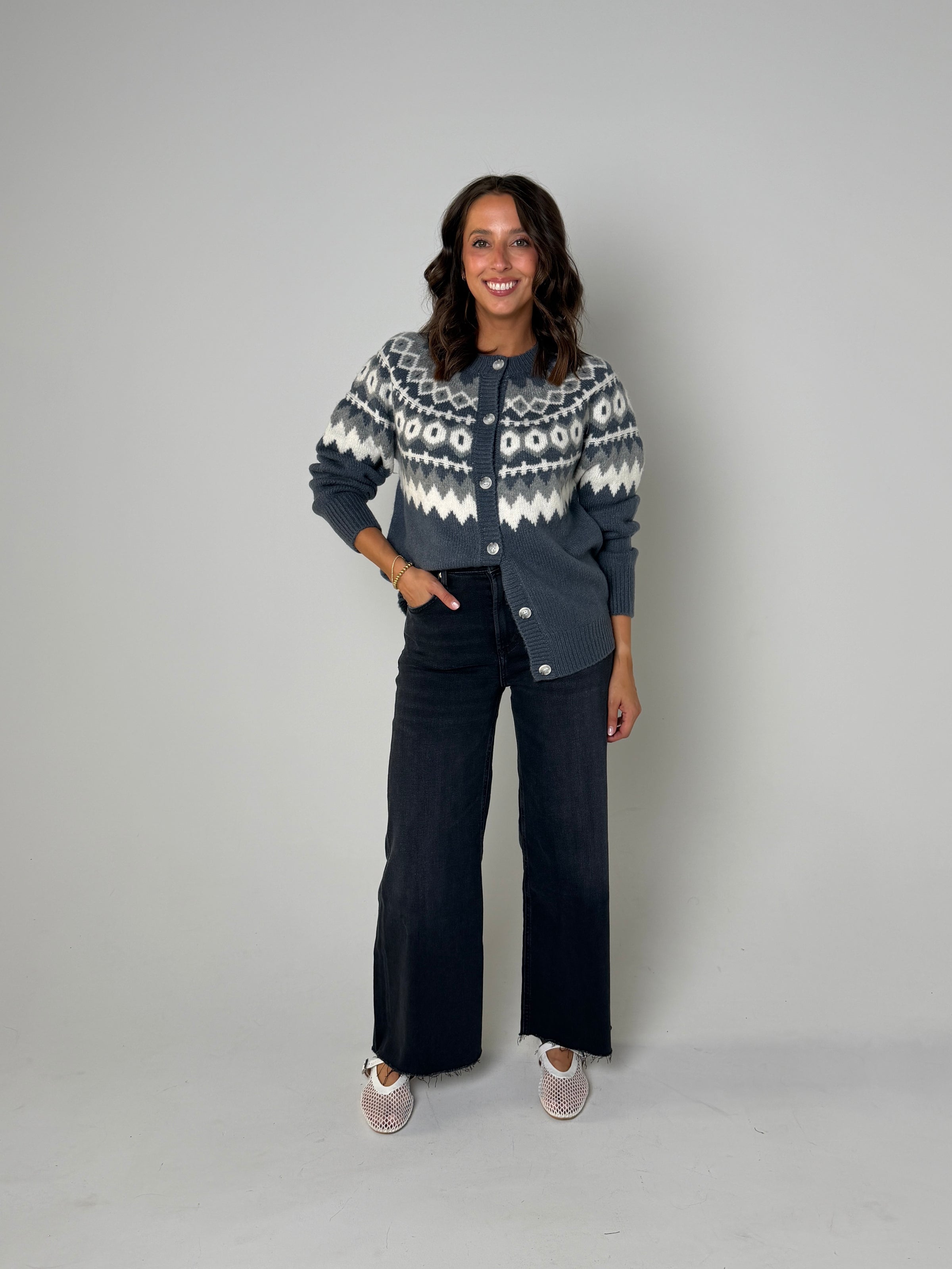Stylist Tip: Introducing the Snowed in Cardigan, a classic and timeless piece in charcoal. The perfect addition to any wardrobe, this cardigan exudes both comfort and style. Stay warm and stylish with this must-have staple.
