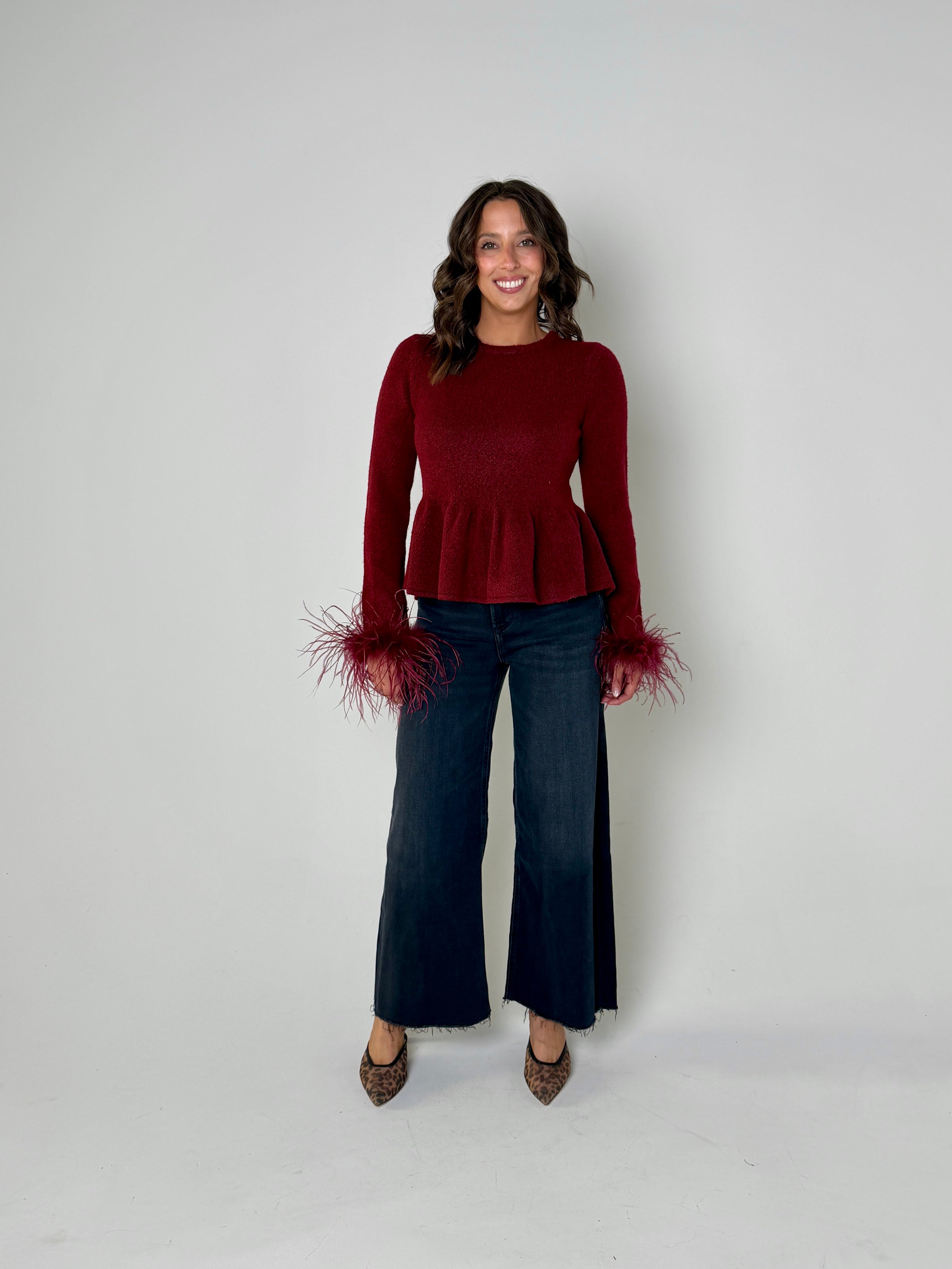 Stylist Tip: Wrap yourself in cozy quills with our Jovi Feather Knit Sweater. This long-sleeved, feather-adorned sweater adds a touch of playful texture to your wardrobe. Perfect for when you want to stay warm and look cool!
