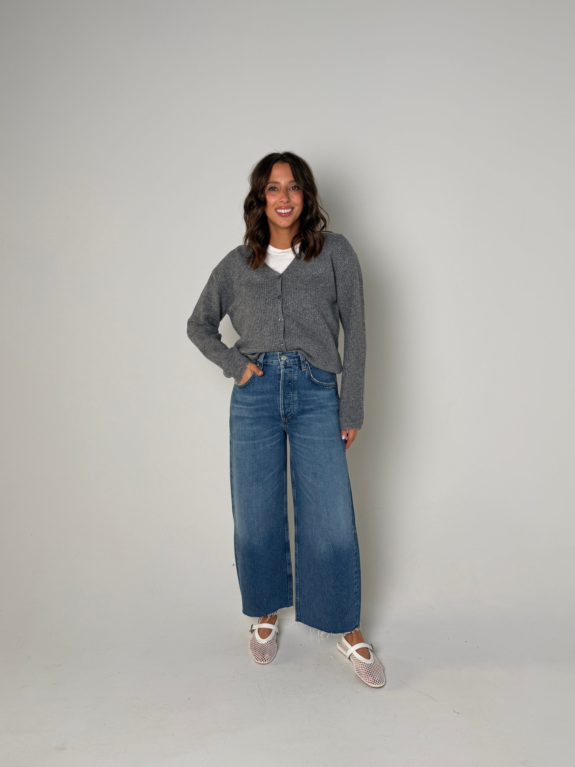 Stylist Tip: Upgrade your wardrobe with the Emile Cardigan. This V-neck, heather Grey colored cardigan is both stylish and versatile. Crafted with comfort and quality in mind, it's the perfect addition to any outfit. Elevate your look with this must-have piece for any season.